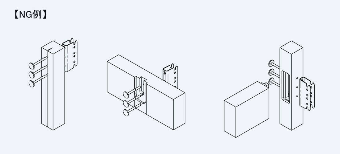※金物本体、接合具周辺に耐力上有害な加工があると、所定の耐力が担保されません。
