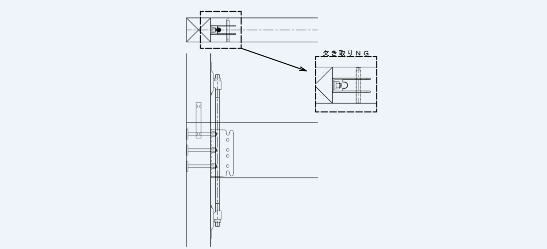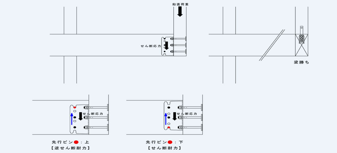 しかし、性能確認時の試験方法との再現性が少し乏しいと考えますので、梁受金物の耐力値に対して十分に余力を持った設計とするなど設計者様でご判断ください。または、梁勝ちの接合部とするなどご検討ください。