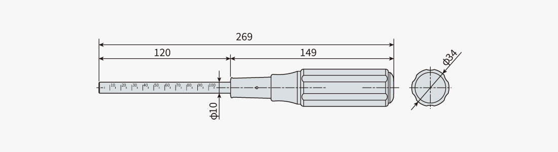 サイズ | グリップ部:φ34×L149mm 先端部:φ10×L120mm |